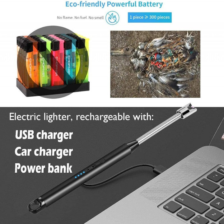 USB Charging:Â The Arc lighter comes equipped with a lithium-ion rechargeable battery, allowing for hundreds of discharges on a single charge.Â
